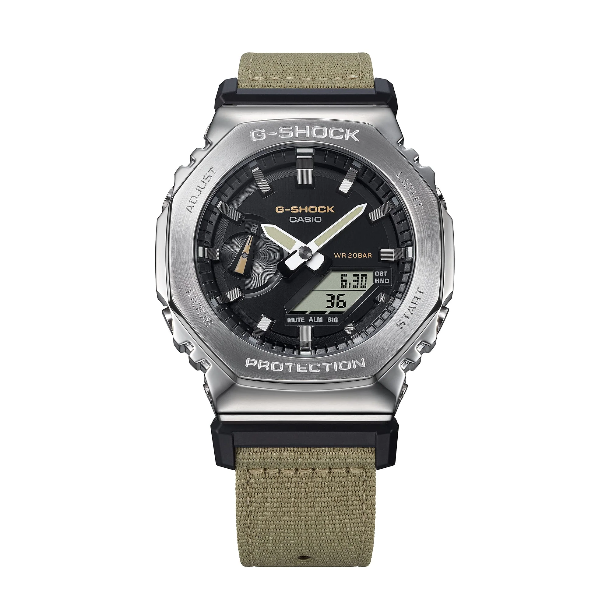 These innovative watches take the iconic octagonal form and metal-clad design of the GM-2100 line and pair it with a casual fabric band in a utilitarian colour that goes with any outfit.